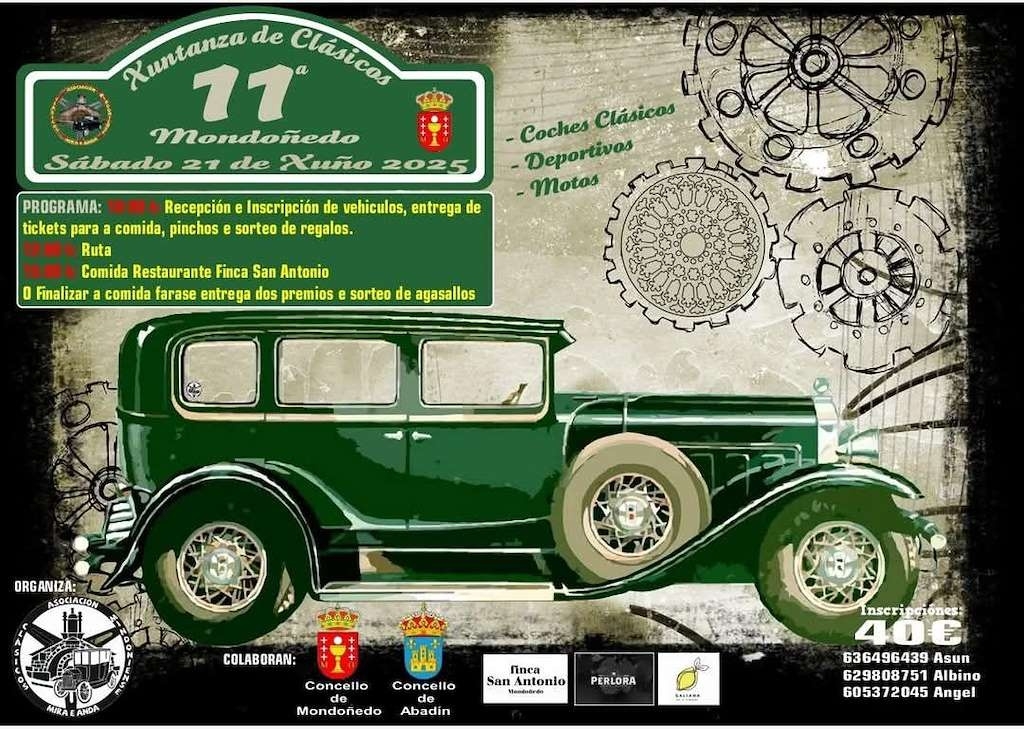 El sábado 21 de junio se celebra una nueva edición de la Xuntanza de Clásicos en Mondoñedo, organizada por la Asociación Clásicos Mindonienses Mira e Anda.